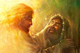 Jezus, przechodząc, ujrzał pewnego człowieka, niewidomego od urodzenia. Uczniowie Jego zadali Mu pytanie: "Rabbi, kto zgrzeszył, że się urodził niewidomy – on czy jego rodzice?" Jezus odpowiedział: "Ani on nie zgrzeszył, ani rodzice jego, ale stało się tak, aby się na nim objawiły sprawy Boże. Trzeba nam pełnić dzieła Tego, który Mnie posłał, dopóki jest dzień. Nadchodzi noc, kiedy nikt nie będzie mógł działać. Jak długo jestem na świecie, jestem światłością świata". To powiedziawszy, splunął na ziemię, uczynił błoto ze śliny i nałożył je na oczy niewidomego, i rzekł do niego: "Idź, obmyj się w sadzawce Siloam" – co się tłumaczy: Posłany. On więc odszedł, obmył się i wrócił, widząc. A sąsiedzi i ci, którzy przedtem widywali go jako żebraka, mówili: "Czyż to nie jest ten, który siedzi i żebrze?" Jedni twierdzili: "Tak, to jest ten", a inni przeczyli: "Nie, jest tylko do tamtego podobny". On zaś mówił: "To ja jestem". Mówili więc do niego: "Jakżeż oczy ci się otworzyły?" On odpowiedział: "Człowiek, zwany Jezusem, uczynił błoto, pomazał moje oczy i rzekł do mnie: „Idź do sadzawki Siloam i obmyj się”. Poszedłem więc, obmyłem się i przejrzałem". Rzekli do niego: "Gdzież On jest?" Odrzekł: "Nie wiem". Zaprowadzili więc tego człowieka, niedawno jeszcze niewidomego, do faryzeuszów. A tego dnia, w którym Jezus uczynił błoto i otworzył mu oczy, był szabat. I znów faryzeusze pytali go o to, w jaki sposób przejrzał. Powiedział do nich: "Położył mi błoto na oczy, obmyłem się i widzę". Niektórzy więc spośród faryzeuszów rzekli: "Człowiek ten nie jest od Boga, bo nie zachowuje szabatu". Inni powiedzieli: "Ale w jaki sposób człowiek grzeszny może czynić takie znaki?" I powstał wśród nich rozłam. Ponownie więc zwrócili się do niewidomego: "A ty, co o Nim mówisz, jako że ci otworzył oczy?" Odpowiedział: "To prorok". Żydzi jednak nie uwierzyli, że był niewidomy i że przejrzał, aż przywołali rodziców tego, który przejrzał; i wypytywali ich, mówiąc: "Czy waszym synem jest ten, o którym twierdzicie, że się niewidomy urodził? W jaki to sposób teraz widzi?" Rodzice zaś jego tak odpowiedzieli: "Wiemy, że to jest nasz syn i że się urodził niewidomy. Nie wiemy, jak się to stało, że teraz widzi; nie wiemy także, kto mu otworzył oczy. Zapytajcie jego samego, ma swoje lata, będzie mówił sam za siebie". Tak powiedzieli jego rodzice, gdyż bali się Żydów. Żydzi bowiem już postanowili, że gdy ktoś uzna Jezusa za Mesjasza, zostanie wyłączony z synagogi. Oto dlaczego powiedzieli jego rodzice: "Ma swoje lata, jego samego zapytajcie". Znowu więc przywołali tego człowieka, który był niewidomy, i rzekli do niego: "Oddaj chwałę Bogu. My wiemy, że człowiek ten jest grzesznikiem". Na to odpowiedział: "Czy On jest grzesznikiem, tego nie wiem. Jedno wiem: byłem niewidomy, a teraz widzę". Rzekli więc do niego: "Cóż ci uczynił? W jaki sposób otworzył ci oczy?" Odpowiedział im: "Już wam powiedziałem, a wy nie słuchaliście. Po co znowu chcecie słuchać? Czy i wy chcecie zostać Jego uczniami?" Wówczas go obrzucili obelgami i rzekli: "To ty jesteś Jego uczniem, a my jesteśmy uczniami Mojżesza. My wiemy, że Bóg przemówił do Mojżesza. Co do Niego zaś, to nie wiemy, skąd pochodzi". Na to odpowiedział im ów człowiek: "W tym wszystkim dziwne jest to, że wy nie wiecie, skąd pochodzi, a mnie oczy otworzył. Wiemy, że Bóg nie wysłuchuje grzeszników, ale wysłuchuje każdego, kto jest czcicielem Boga i pełni Jego wolę. Od wieków nie słyszano, aby ktoś otworzył oczy niewidomemu od urodzenia. Gdyby ten człowiek nie był od Boga, nie mógłby nic uczynić". Rzekli mu w odpowiedzi: "Cały urodziłeś się w grzechach, a nas pouczasz?" I wyrzucili go precz. Jezus usłyszał, że wyrzucili go precz, i spotkawszy go, rzekł do niego: "Czy ty wierzysz w Syna Człowieczego?" On odpowiedział: "A któż to jest, Panie, abym w Niego uwierzył?" Rzekł do niego Jezus: "Jest nim Ten, którego widzisz i który mówi do ciebie". On zaś odpowiedział: "Wierzę, Panie!" i oddał Mu pokłon. A Jezus rzekł: "Przyszedłem na ten świat, aby przeprowadzić sąd, żeby ci, którzy nie widzą, przejrzeli, a ci, którzy widzą, stali się niewidomymi". Usłyszeli to niektórzy faryzeusze, którzy z Nim byli, i rzekli do Niego: "Czyż i my jesteśmy niewidomi?" Jezus powiedział do nich: "Gdybyście byli niewidomi, nie mielibyście grzechu, ale ponieważ mówicie: „Widzimy”, grzech wasz trwa nadal". (J 9, 1-41)